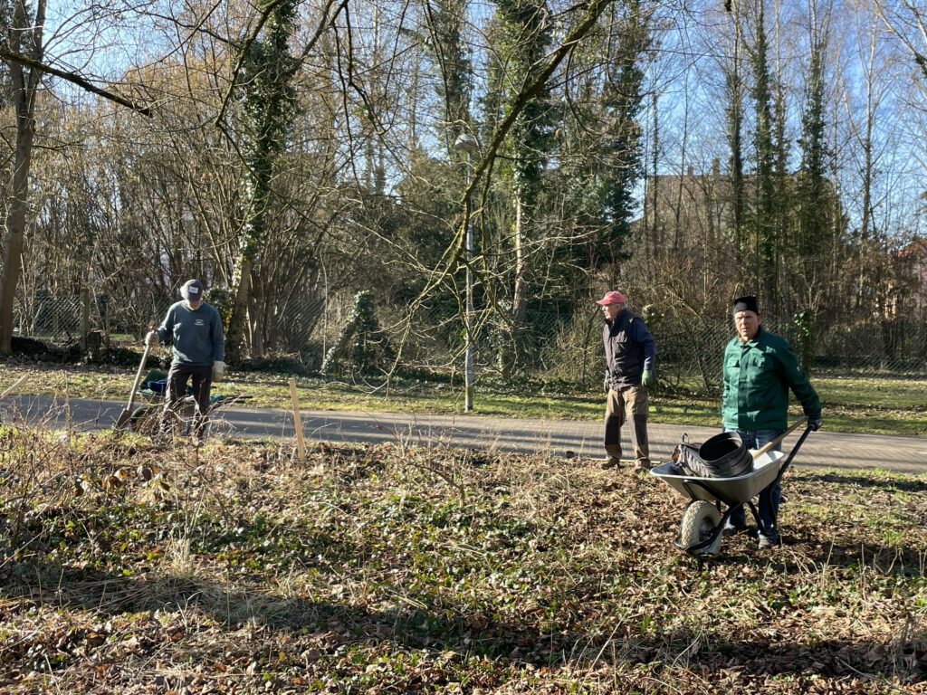 Parallel konnten ca. 500 Primula acaulis – der Wildart, keine Hochzuchtsorten – aus der Anzucht von Volker Meng an verschiedensten Stellen im FBG ausgepflanzt werden. Sie werden den Blütenflor im Frühjahr bereichern und das Pollen- und Nektarangebot für Insekten erweitern. Schon im ersten Jahr erfreuen sie mit ihren unterschiedlich intensiv gelben Blüten die Besucher. Fotos: Mehring-Lemper